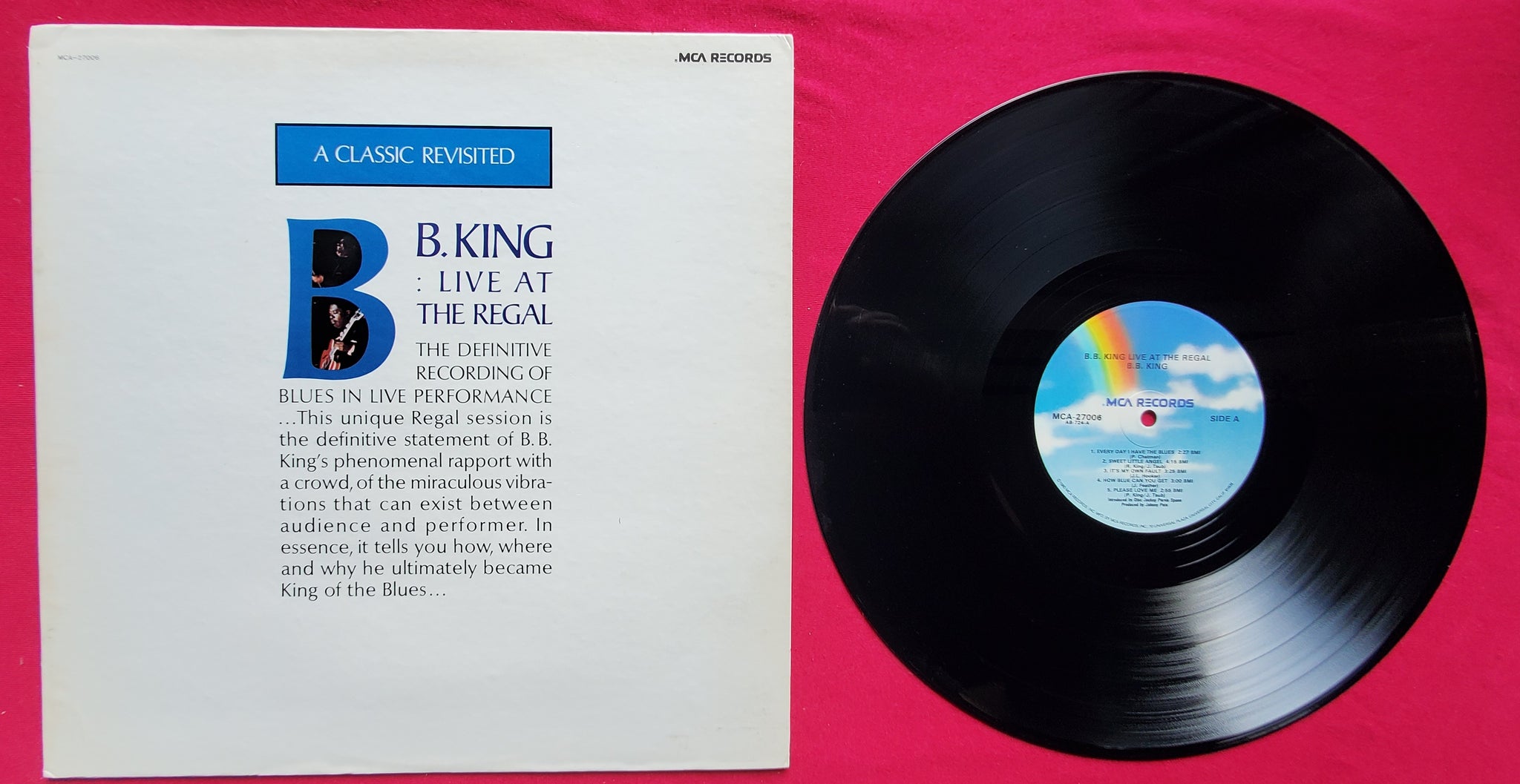 Label variation: rainbow labels with album title at top split over 2 lines (line break between "B.B. King" and "Live At the Regal")